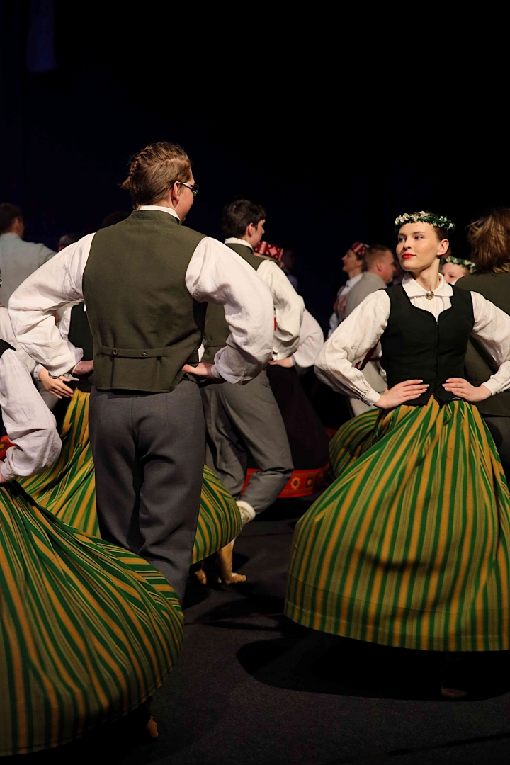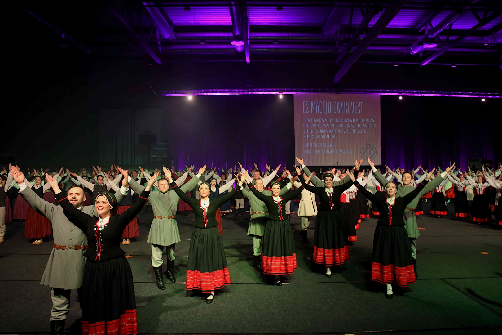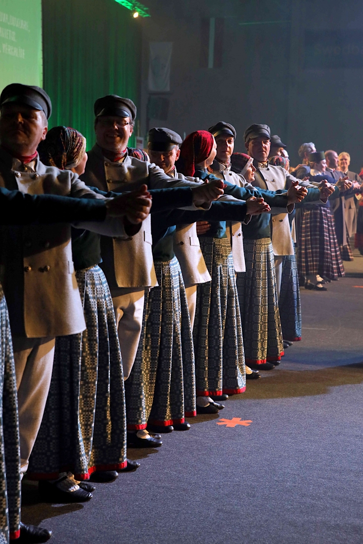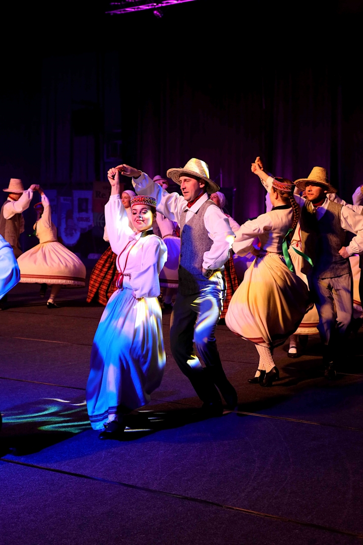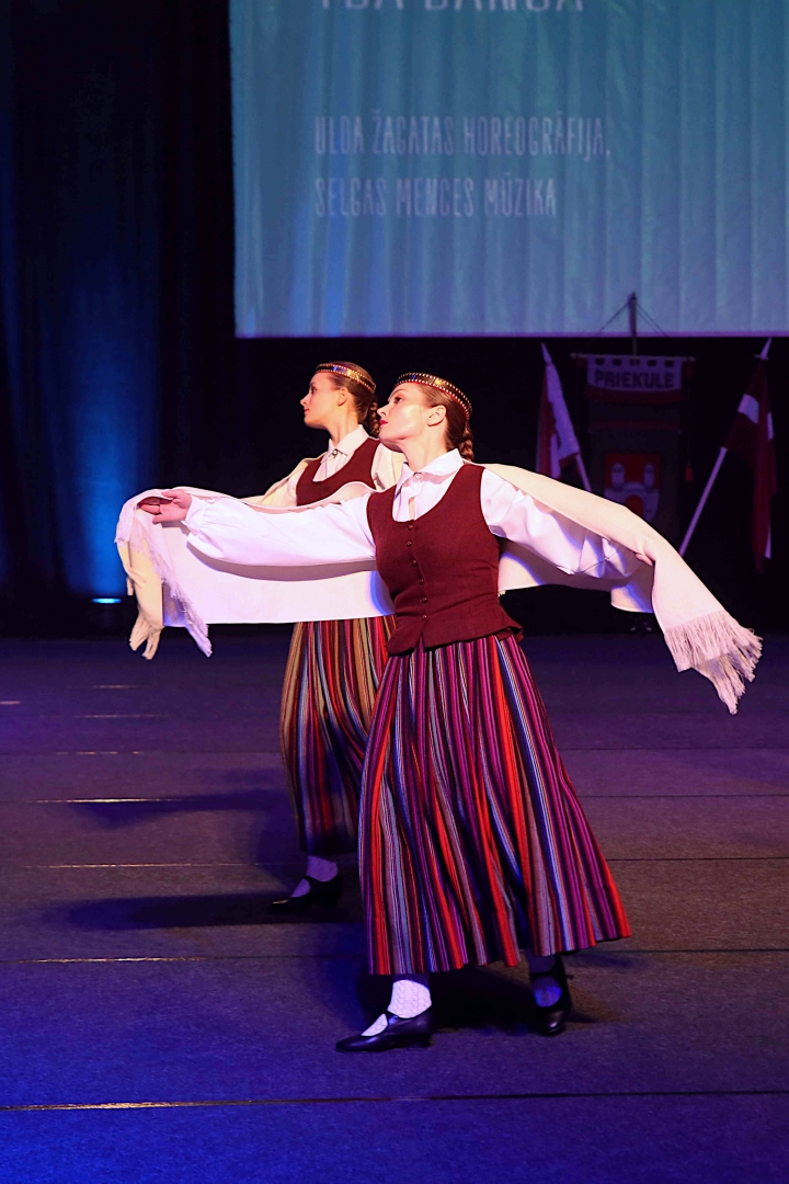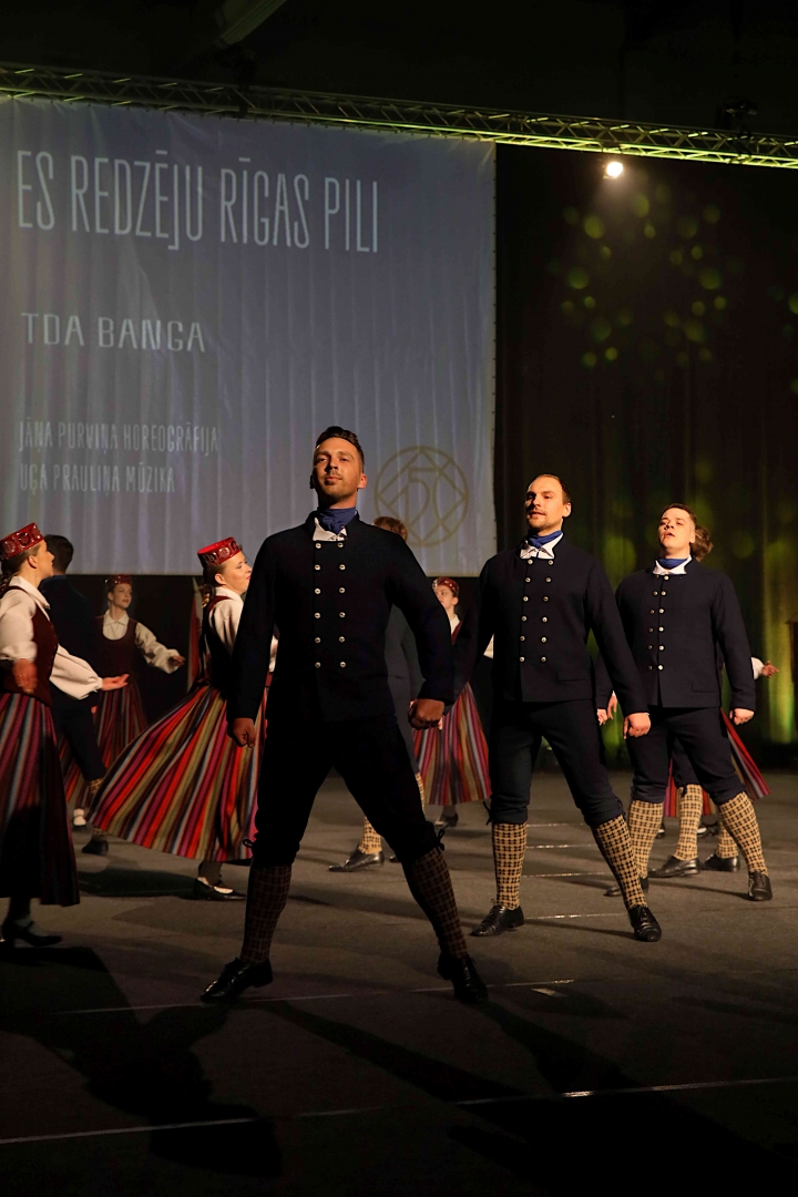 Deju koncerta laikā 25 tautas deju kolektīvi izdejoja koncepcijas autoru un režisoru Madaras Gruntmanes - Dujanas un Kaspara Bērziņa Deju svētku lieluzveduma “Mūžīgais dzinējs” repertuāru un skatuviskās dejas koncerta “Balts” un noslēguma koncerta “Kopā augšup” deju repertuāru.