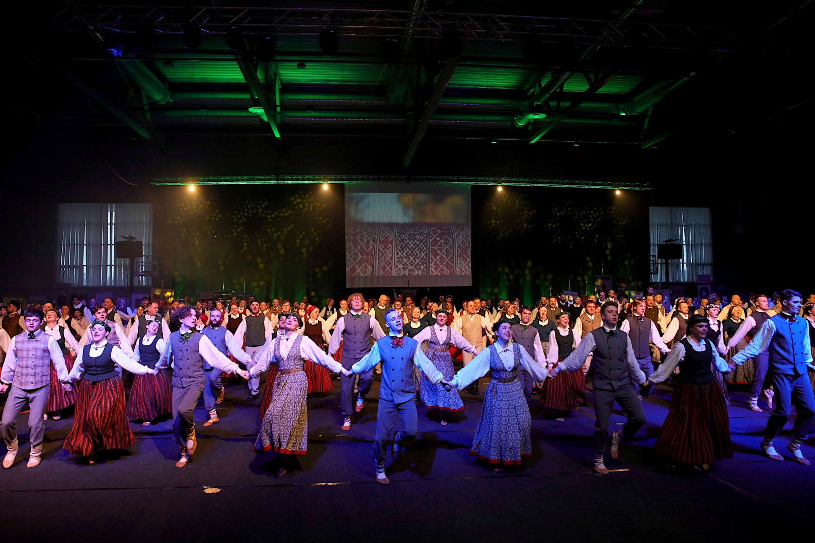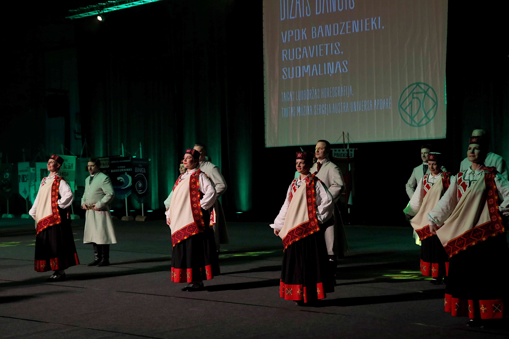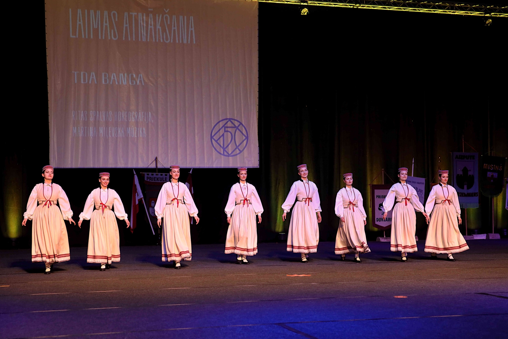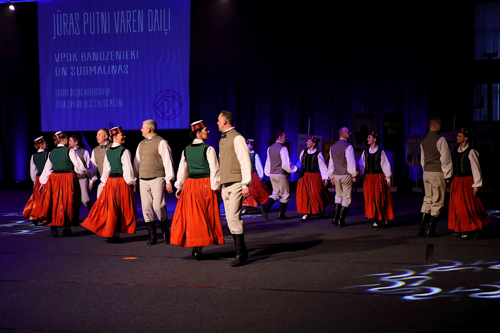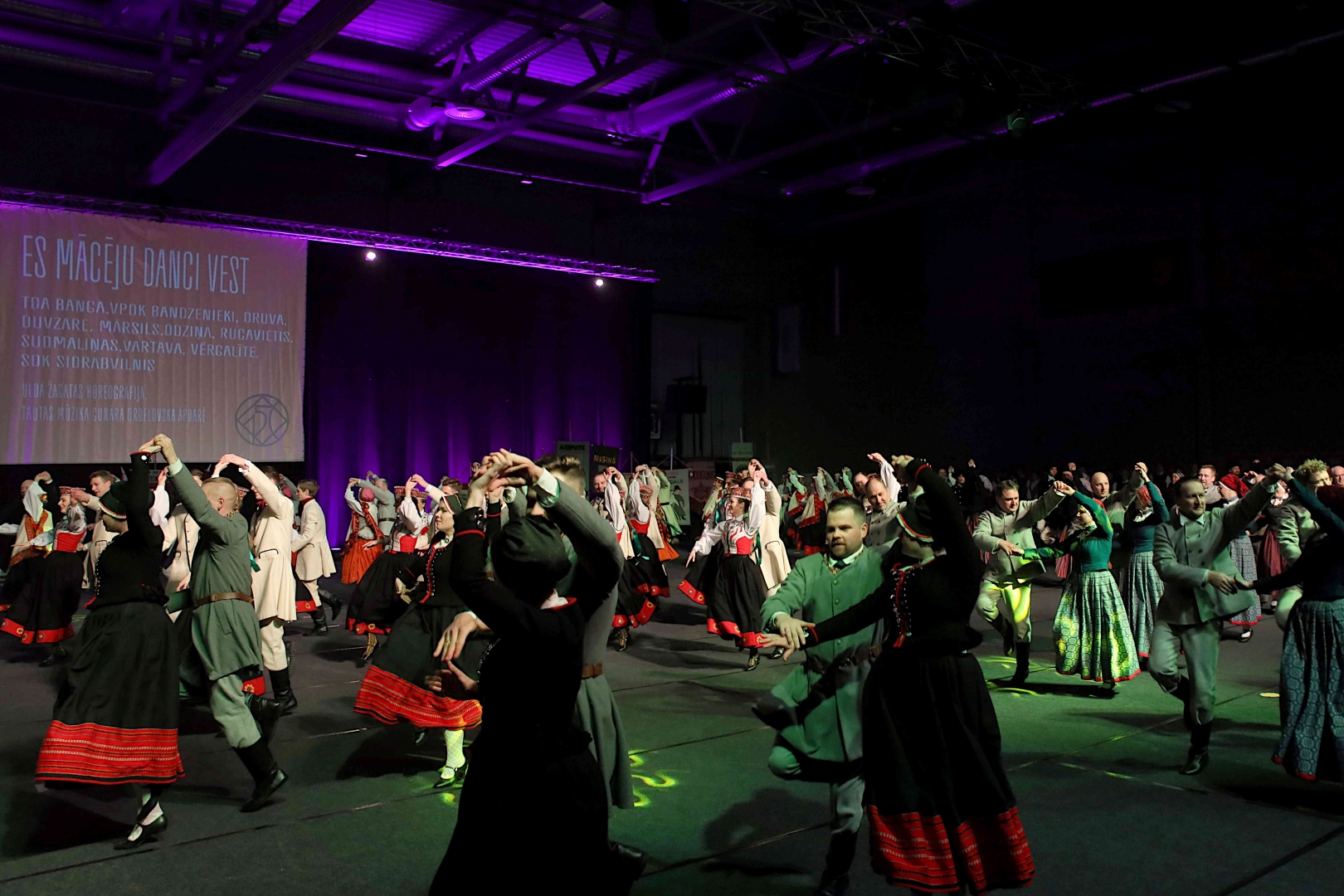 Deju koncerta laikā 25 tautas deju kolektīvi izdejoja koncepcijas autoru un režisoru Madaras Gruntmanes - Dujanas un Kaspara Bērziņa Deju svētku lieluzveduma “Mūžīgais dzinējs” repertuāru un skatuviskās dejas koncerta “Balts” un noslēguma koncerta “Kopā augšup” deju repertuāru.