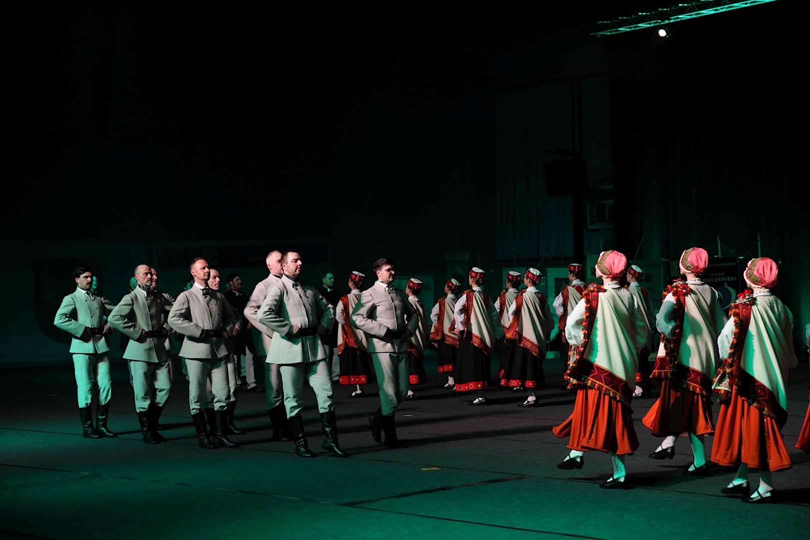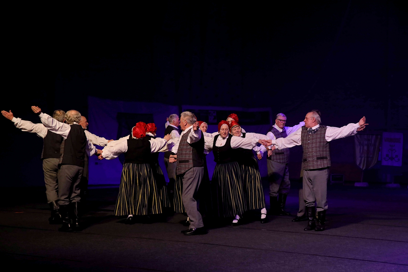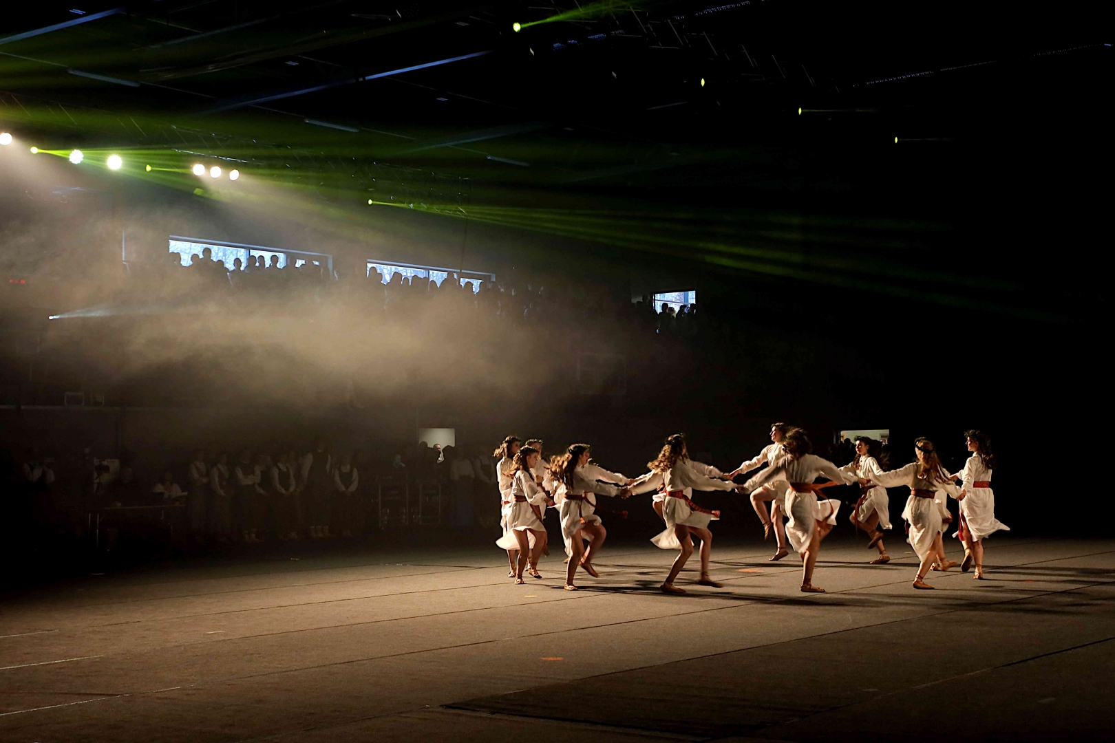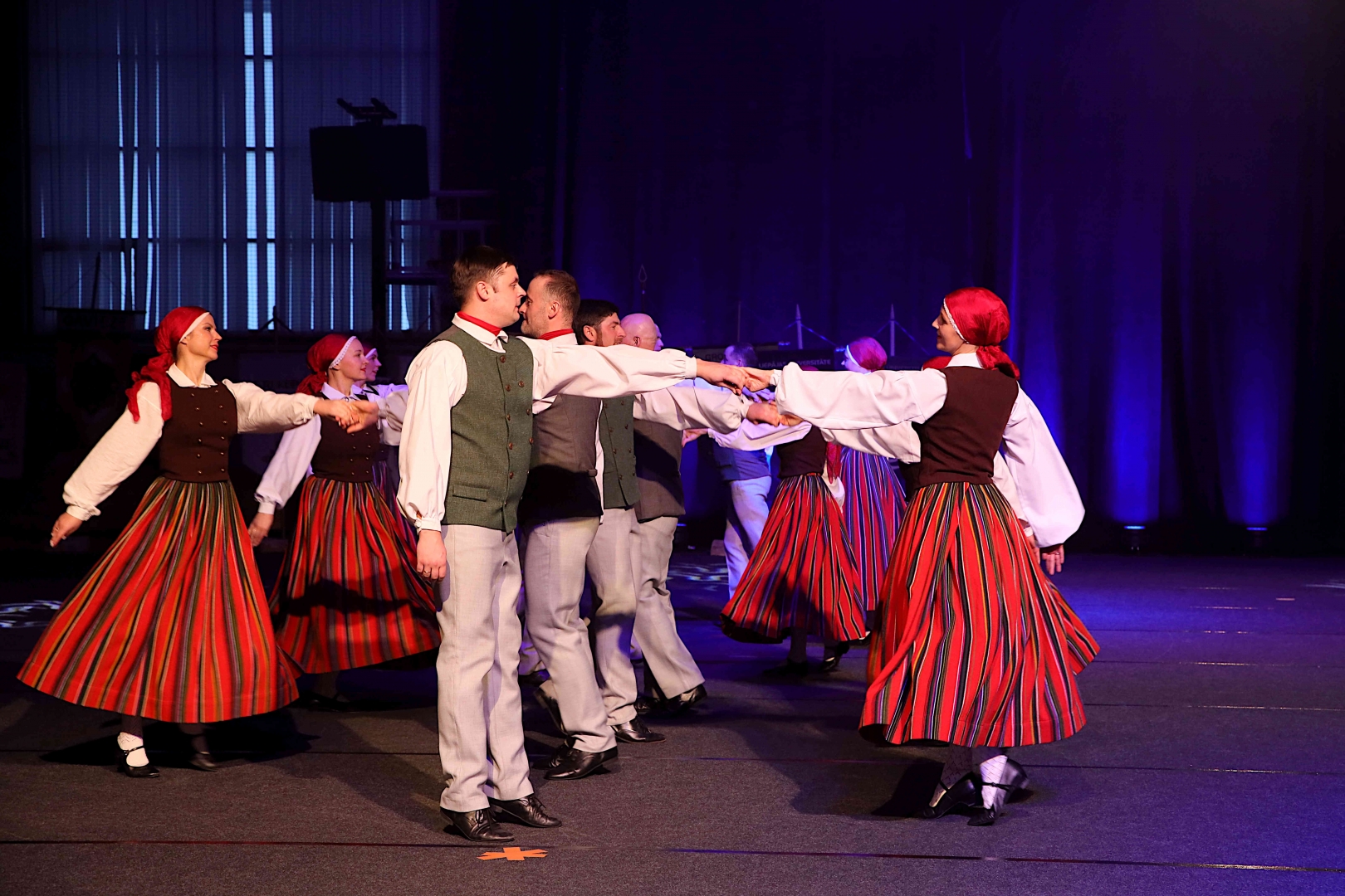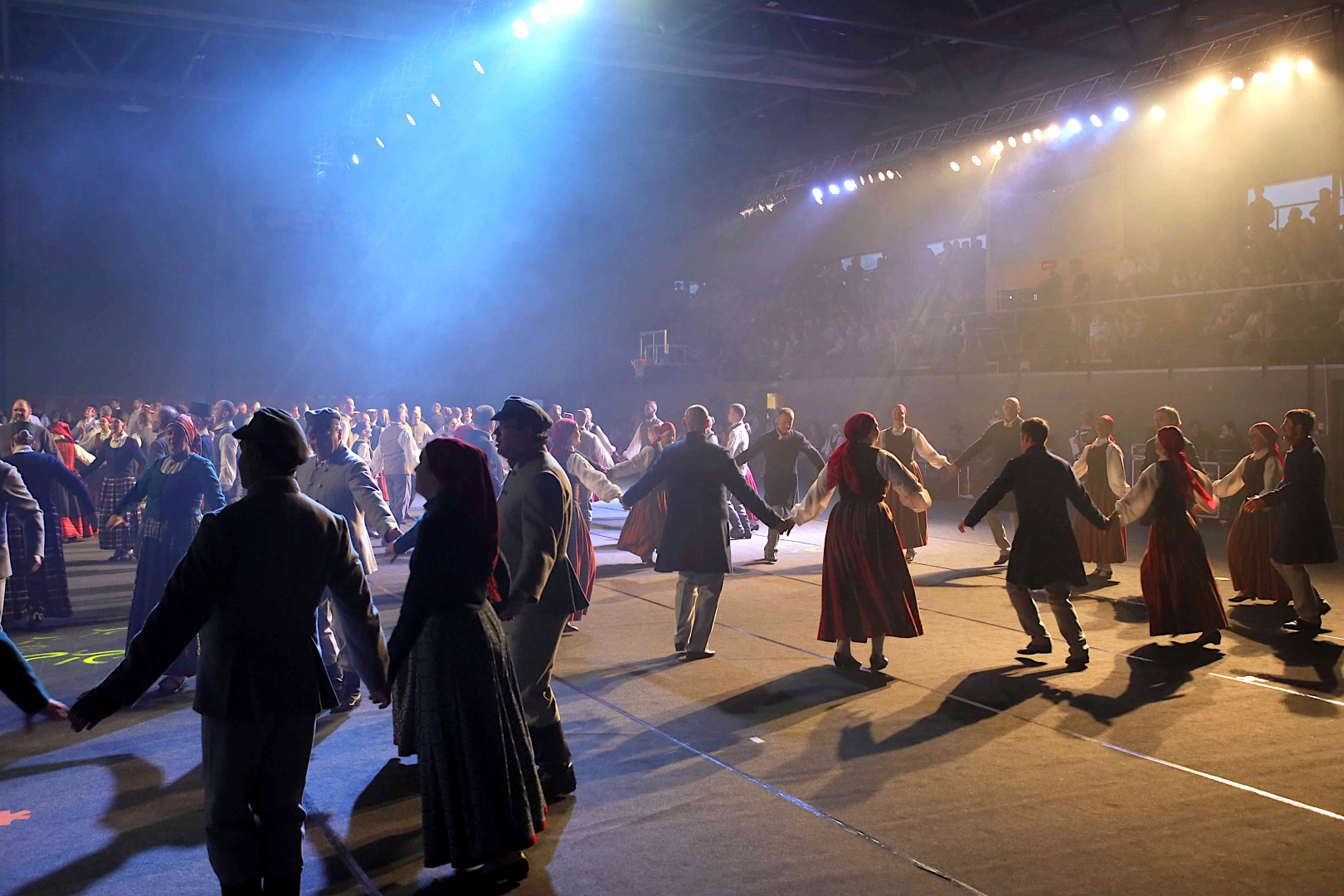 Deju koncerta laikā 25 tautas deju kolektīvi izdejoja koncepcijas autoru un režisoru Madaras Gruntmanes - Dujanas un Kaspara Bērziņa Deju svētku lieluzveduma “Mūžīgais dzinējs” repertuāru un skatuviskās dejas koncerta “Balts” un noslēguma koncerta “Kopā augšup” deju repertuāru.