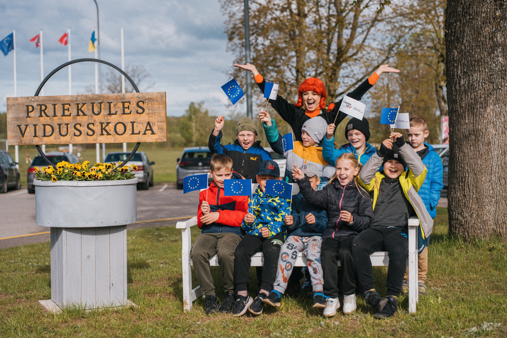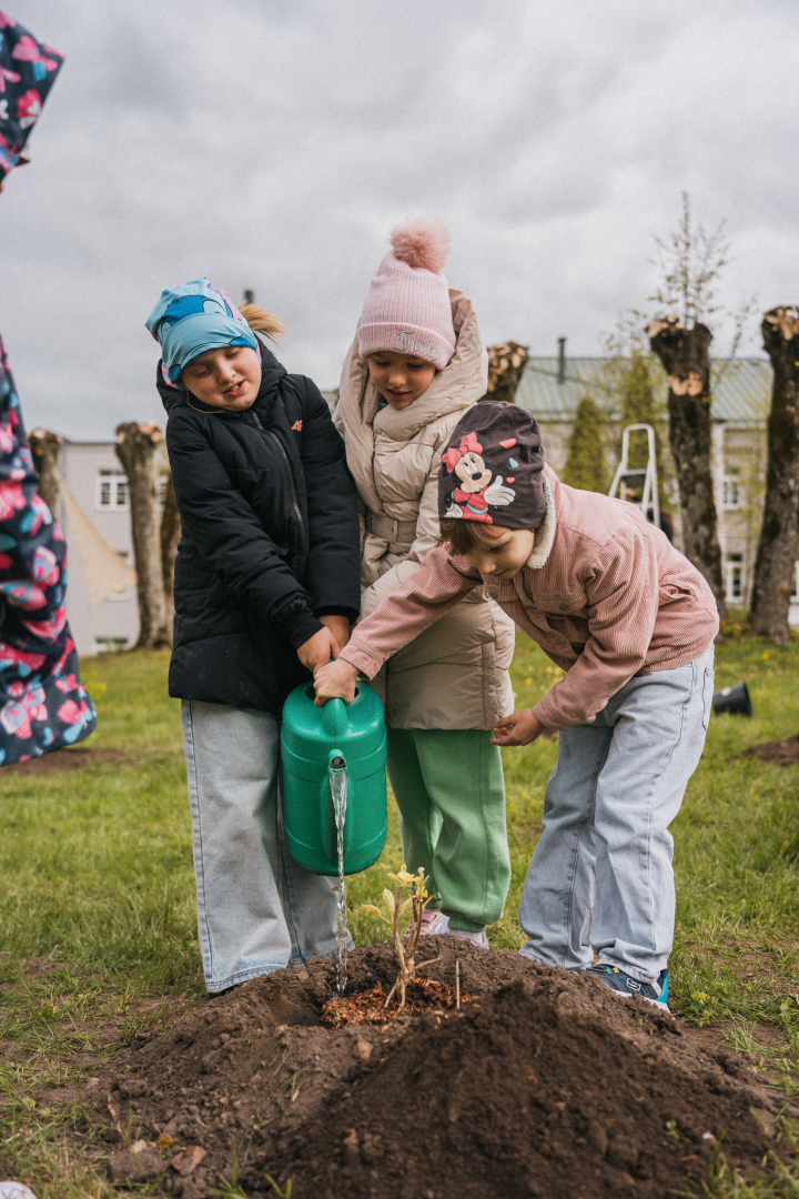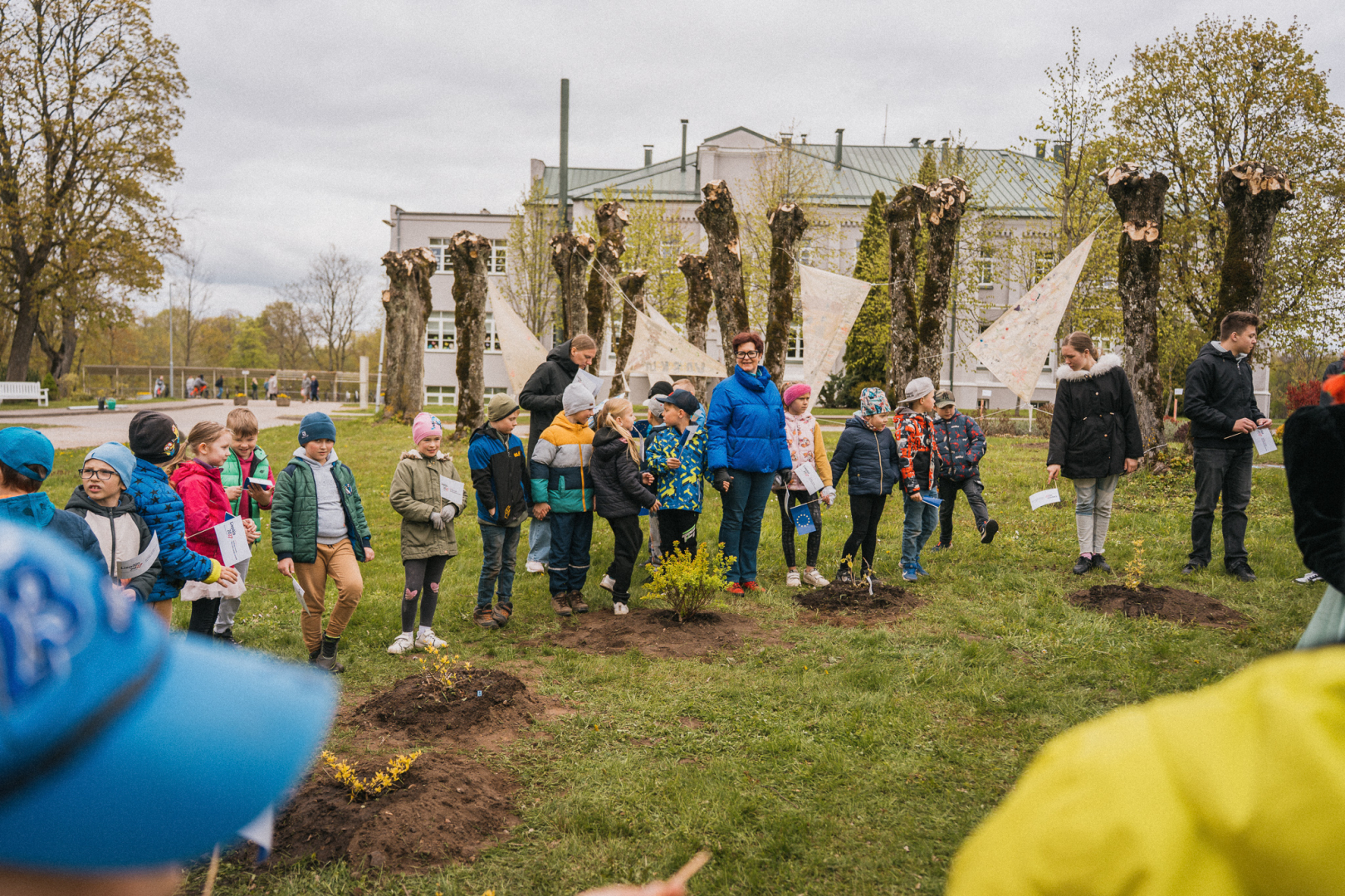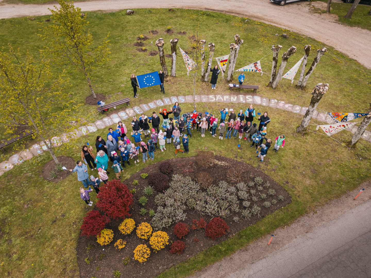 🌼 Tika iestādīti 12 dzeltenas krāsas košumkrūmi – simbols Eiropas Savienības zvaigznēm.