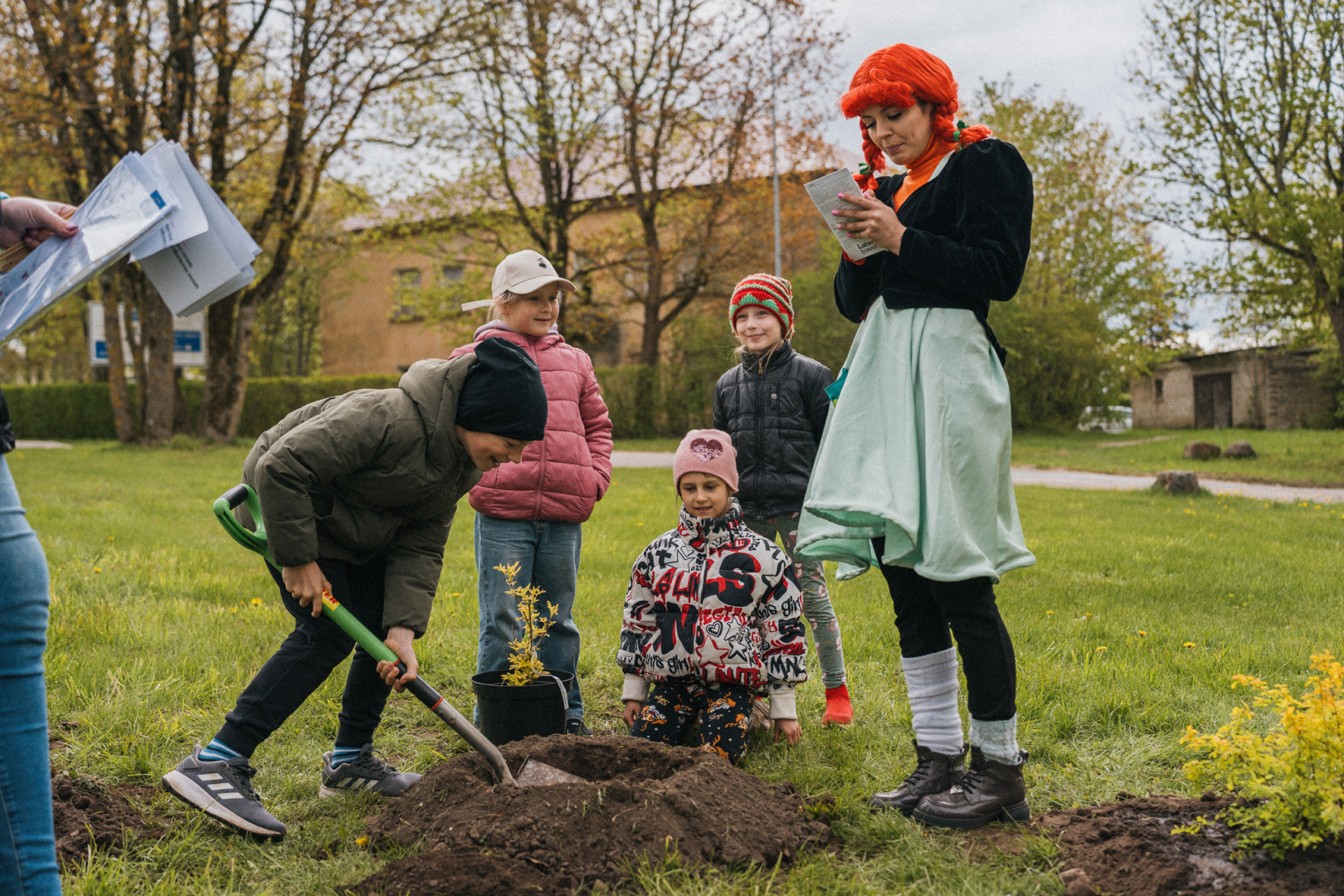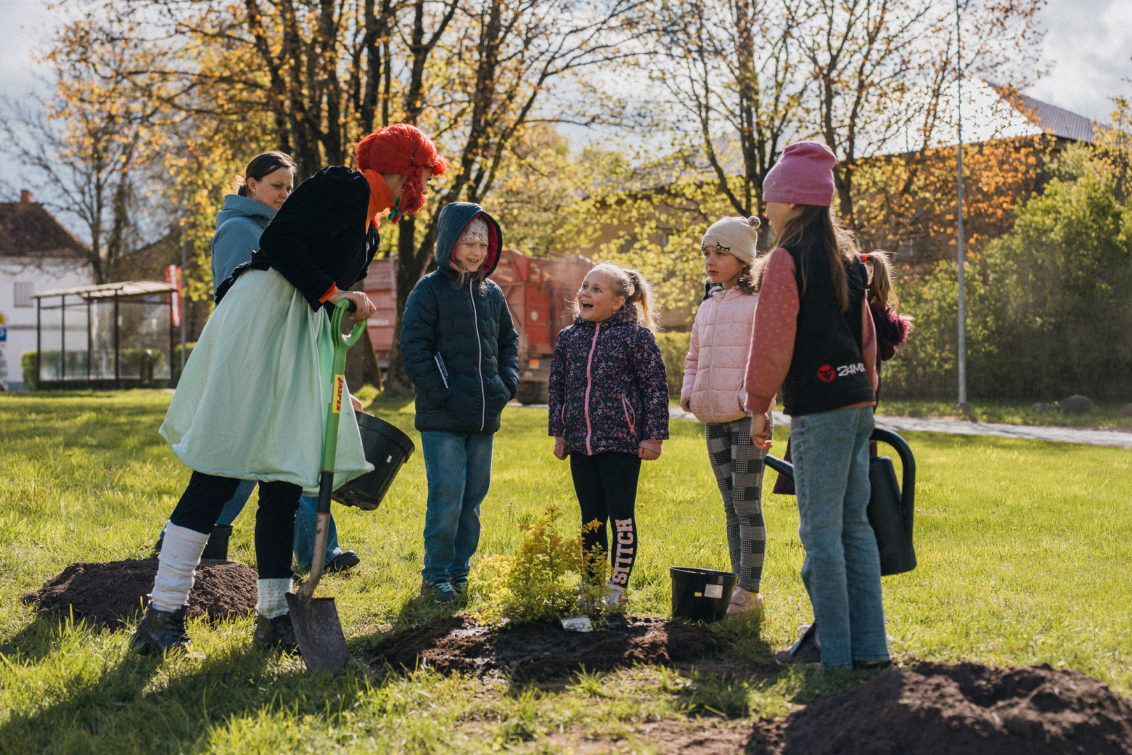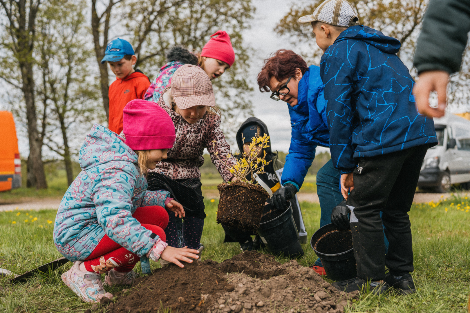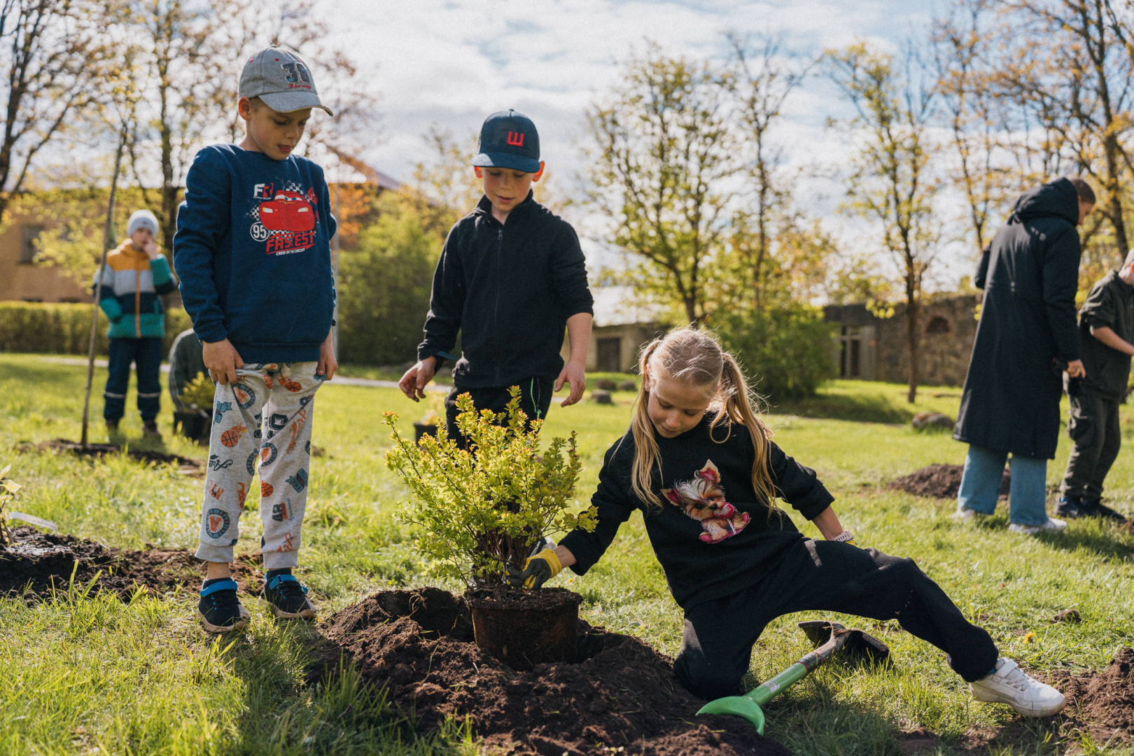 🌼 Tika iestādīti 12 dzeltenas krāsas košumkrūmi – simbols Eiropas Savienības zvaigznēm.