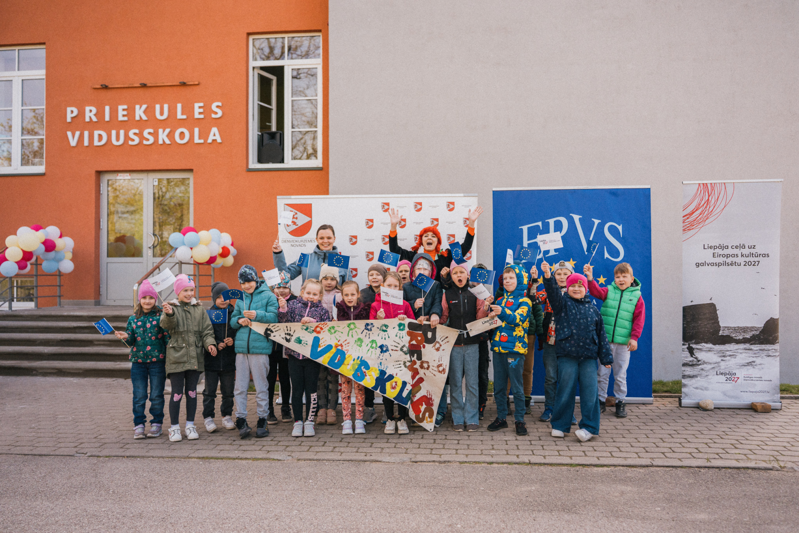 9. maija rītā Priekules vidusskolas pagalmā norisinājās svētki, ko organizēja nodibinājuma ''Liepāja 2027'', Dienvidkurzemes novada pašvaldības un Eiropas Parlamenta Vēstnieku skolas jaunieši un skolotāji, aicinot ciemos 1. klašu skolēnus no Priekules, Kalētu un Krotes skolām. Pasākumu vadīja Pepija Garzeķe, radoši darbojoties ar bērniem un iepazīstinot ar Eiropas vērtībām.