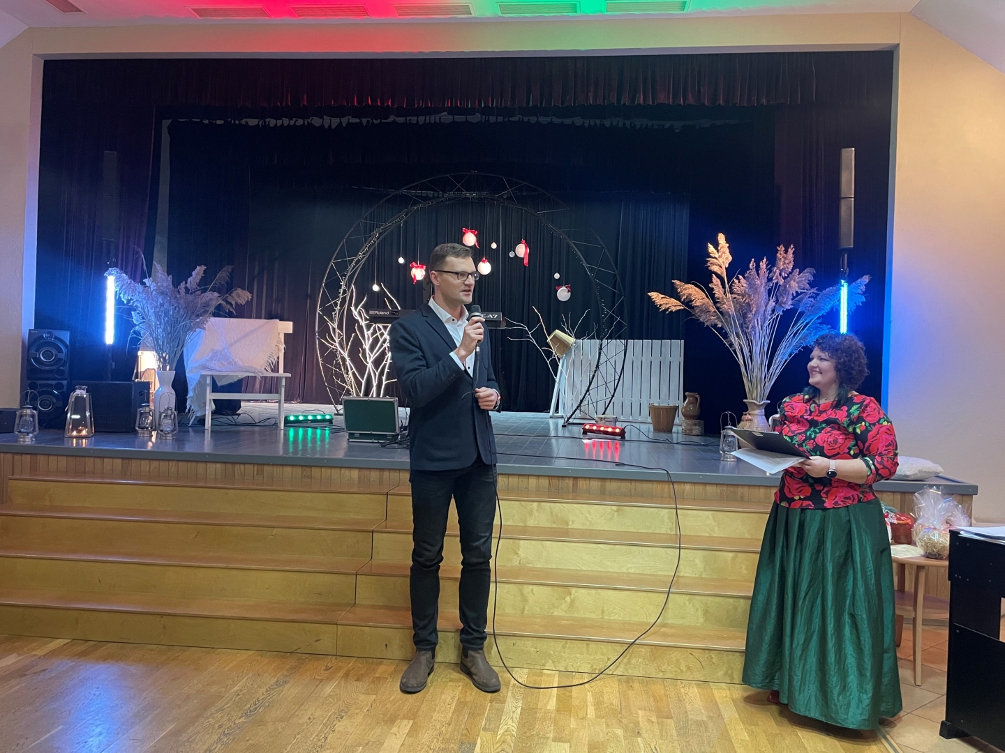Pasākuma laikā laba vēlējumus Jaunajā gadā teica arī Dienvidkurzemes novada domes priekšsēdētāja vietnieks Raivis Kalējs un Medzes pagasta pārvaldniece Ilga Heinacka, bet uz jestriem dančiem aicināja pasākuma īpašais viesis Artis Šimpermanis.