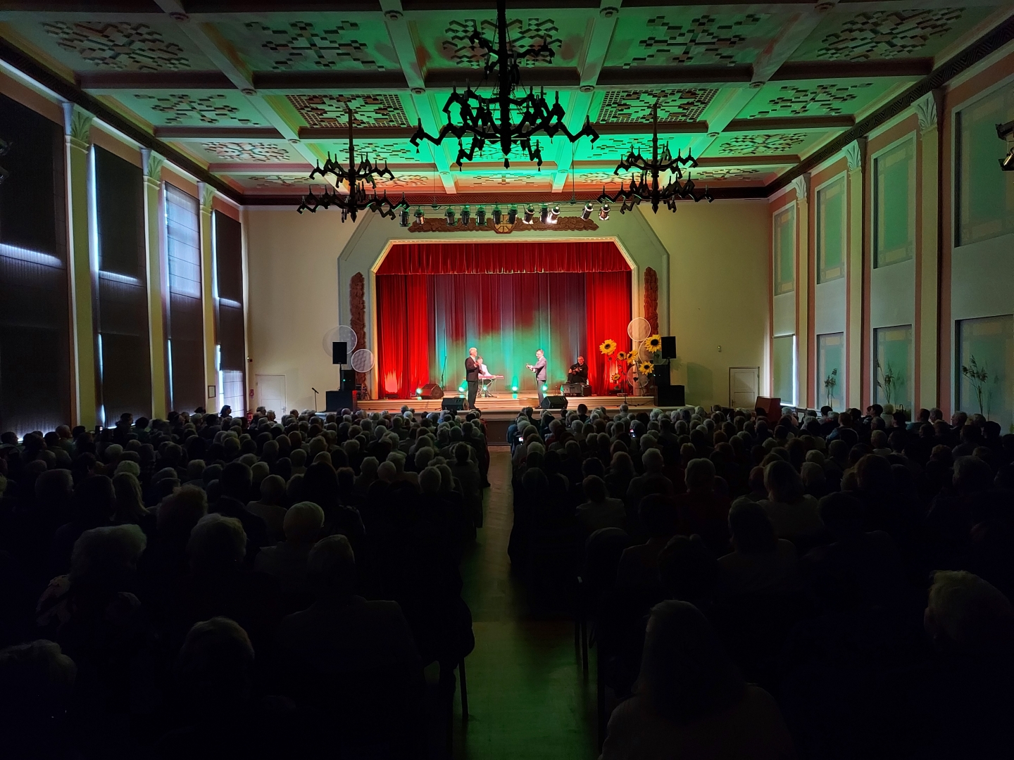 senioru varēja izdziedāt līdzi mūsu tautas visskaistākajām dziesmām, kā arī baudīt mākslinieku gaumīgo humora izjūtu un pozitīvo mijiedarbību uz skatuves. A. Ērglis ir lepns, ka var saukt sevi par kazdandznieku un uzstāties mūsu novada zelta fondam - mūsu senioriem. Arī U. Roze ar prieku uzstājās šajā skaistajā namā, jo viņa tēva māsa dzīvojusi Kazdangā.