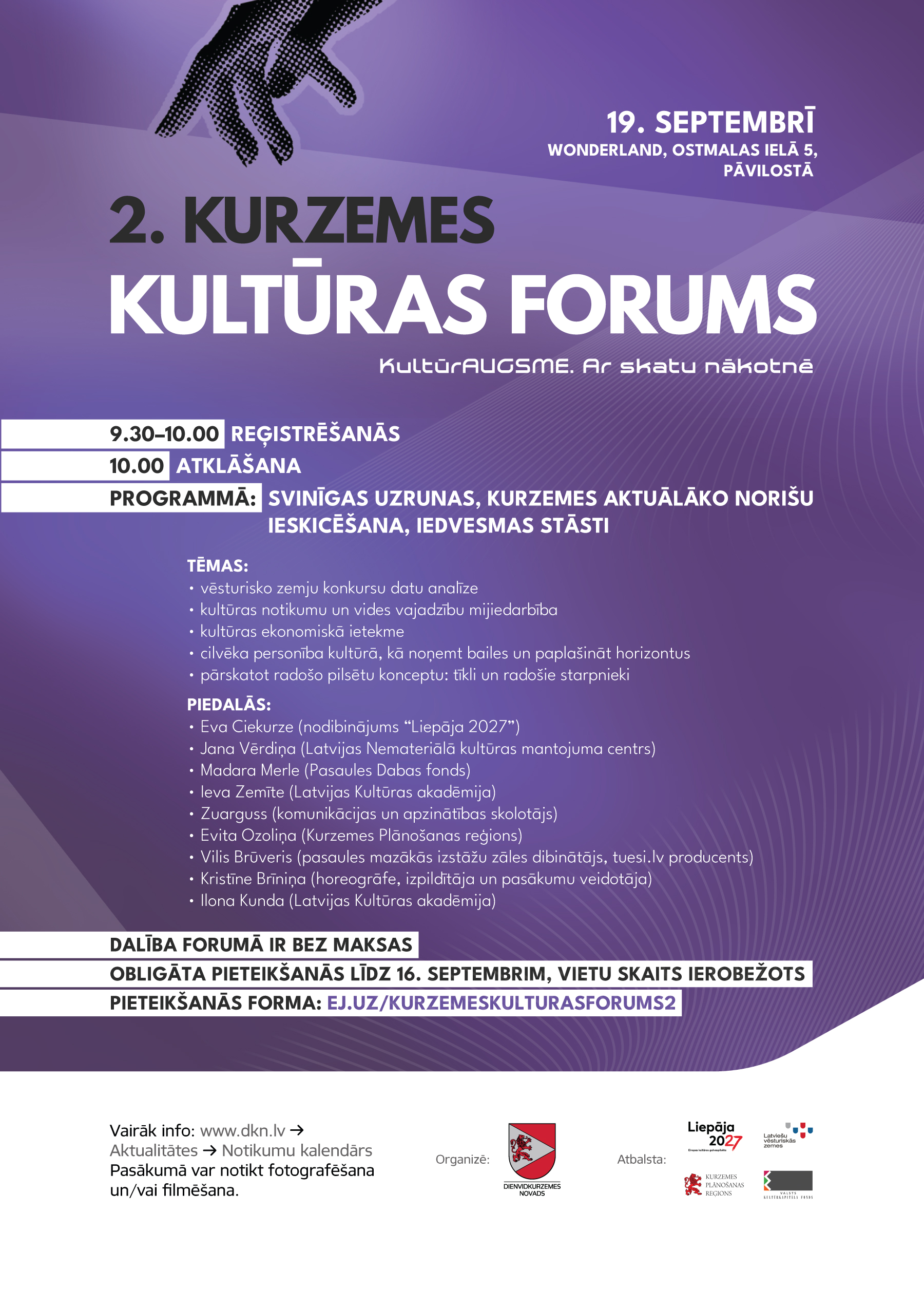 Dalība forumā ir bez maksas. Obligāta pieteikšanās līdz 16. septembrim. Vietu skaits ierobežots.